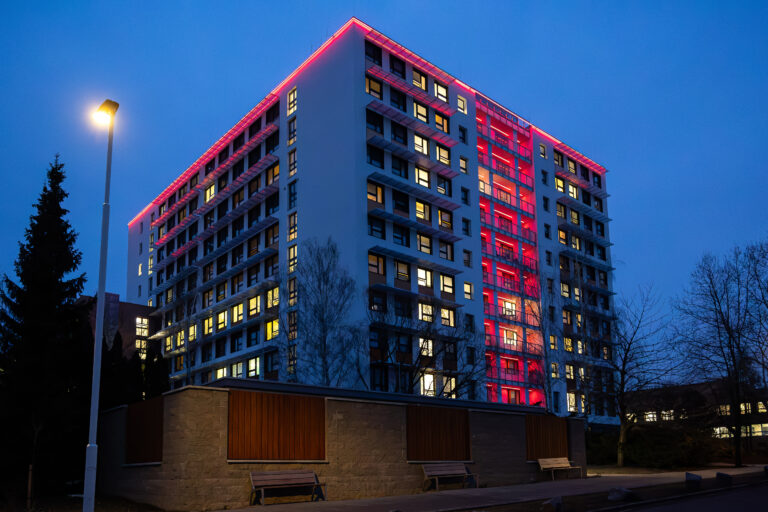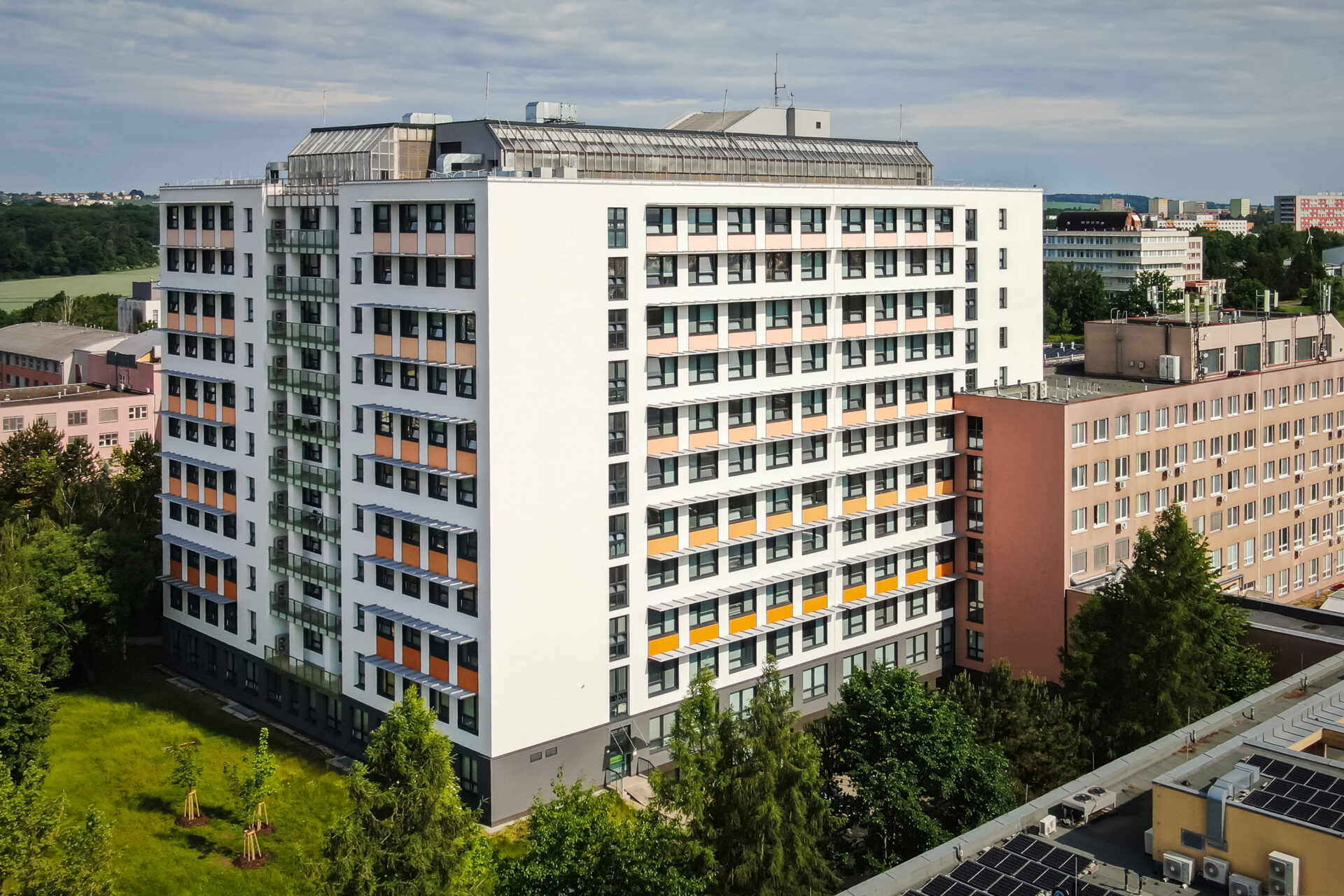 Lůžkový monoblok FNO je objektem s 12 nadzemními a 2 podzemními podlažími a kapacitou 600 pacientů. Výška budovy nad terénem je cca 46 m, a je tedy nejvyšší stavbou v areálu FNO. Půdorysné rozměry objektu jsou cca 56 x 44 m. V budově se nachází 22 lůžkových zdravotnických oddělení, vždy dvě na jednom patře. Nejnižší suterén a 10. nadzemní podlaží slouží jako technická patra.