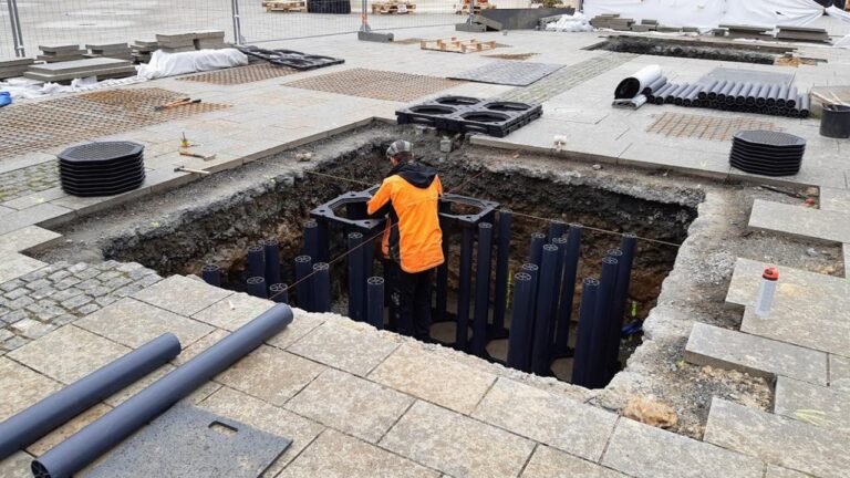 K zasazení byla využita technologie prokořenitelných buněk (2,5 x 2,5 m) se zavlažovacím systémem, které umožňují volný růst kořenů, brání udusání půdy a chrání okolní dlažbu.
