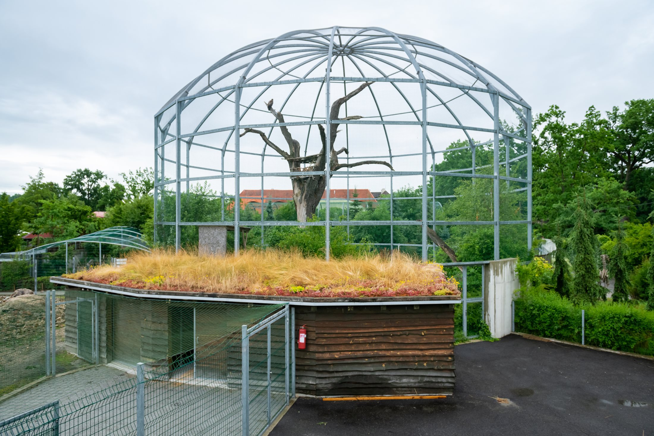 Návštěvníci zoologické zahrady v Hluboké nad Vltavou procházeli původně areálem víceméně tradičního vzhledu. Mezi pavilony byly na krátko posekané trávníky, udržované stromy a keře, střechy pavilonů měly obvyklé krytiny. Pak ale v roce 2000 přišla změna celé koncepce a zoo se začala postupně proměňovat. Střechy nově postavených pavilonů jsou nyní pokryté rostlinami a trávníky postupně nahrazují pestré trvalkové plochy. Díky tomu se zvýšila schopnost celé oblasti zadržovat vodu a panuje zde příjemnější mikroklima pro zvířata, návštěvníky i zaměstnance. Vedení zoo si také pochvaluje, že zahrada je nyní pro návštěvníky příjemná i v případě, že se v expozici nepodaří pozorovat vystavované zvíře. Příjemným bonusem je pak to, že trvalkové porosty vyžadují méně údržby než trávníky.