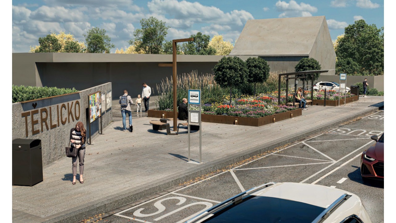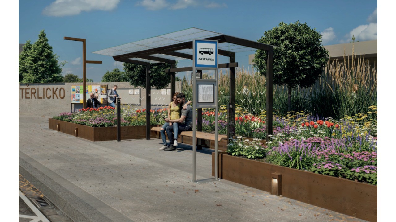 Jedná se o revitalizaci dvou autobusových zastávek v centru Těrlicka. Zastávka je místo, kde se návštěvník prvotně setkává s obcí. Zastávky jsou nyní v nevyhovujícím stavu a neodpovídají nově zvolené koncepci architektury obce.